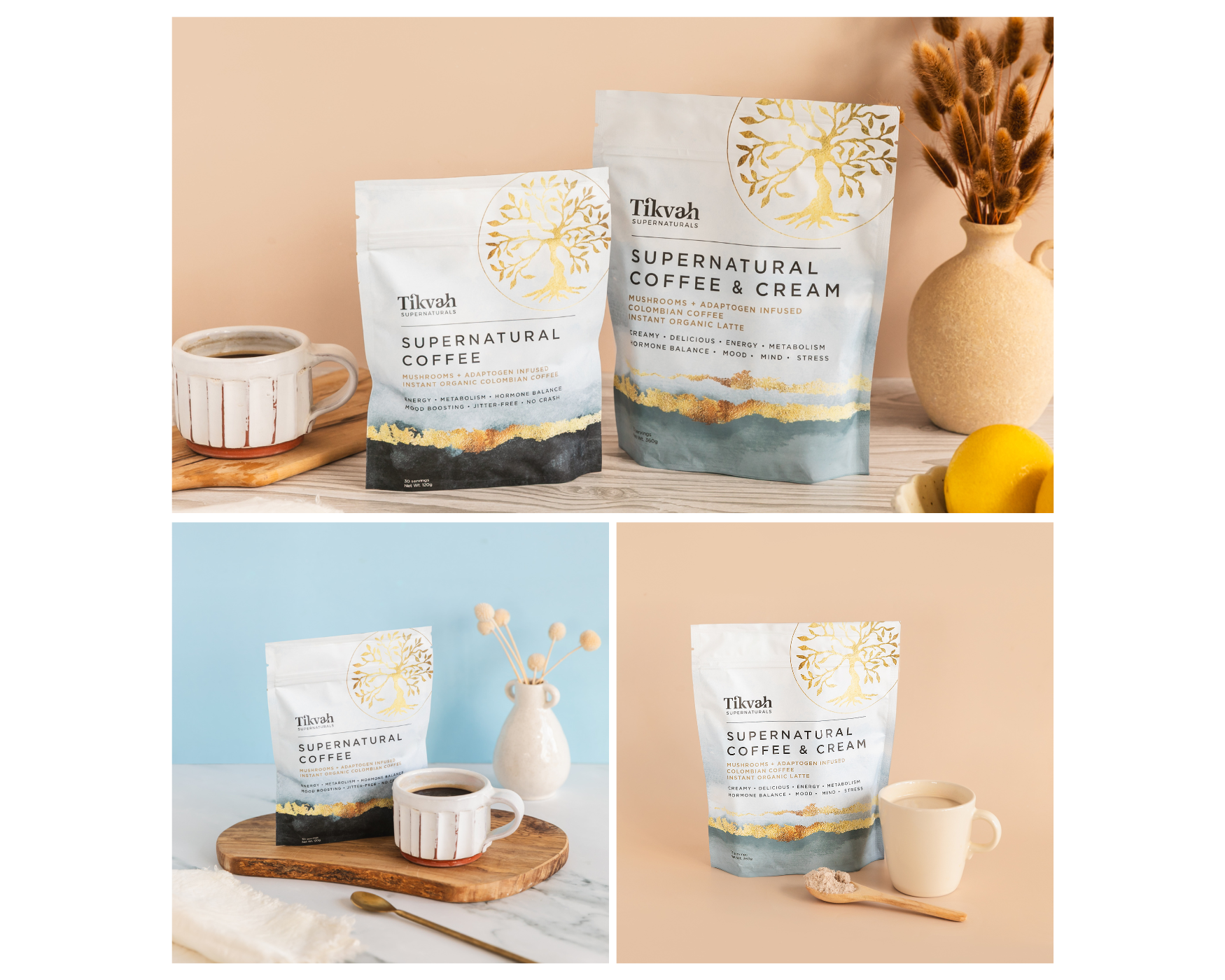Supernatural Coffee (black) Ingredients: Organic Colombian Coffee, Mushroom blend (Chaga, Cordyceps, Lion’s Mane, Maca, Mucuna Pruriens, Reishi, Rhodiola, Shilajit).